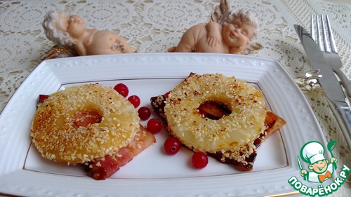 Хочу поделится с вами замечательным блюдом. Это блюдо удивит вас своим вкусом. Сочетание мяса с ананасом и кунжутом дает неповтортимый изысканный вкус. Это блюдо подавал нам шеф повар В Греции на завтрак. С тех пор это мое любимое блюдо.