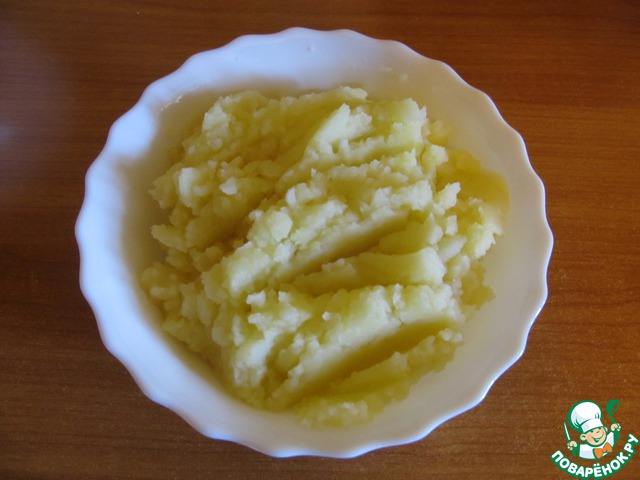 Картофель сварить в соленой воде. Слить воду, добавить сливочное масло и потолочь.