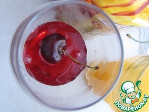 На дно бокала кладем вишенку (черешенку, клубничку, малинку и т. д.).