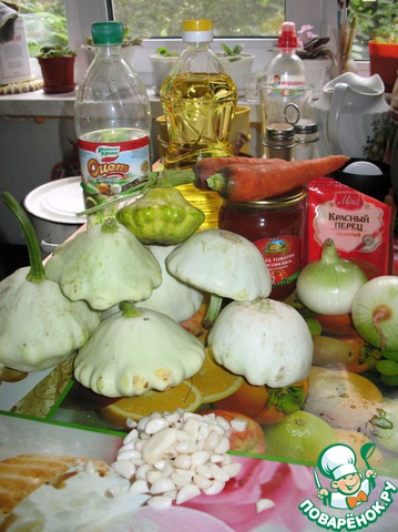 Для начала приготовим все ингредиенты для нашей икры. Сегодня у меня вместо кабачков патиссоны и готовлю полпорции, так как большой кастрюли у меня нет.