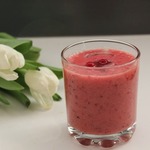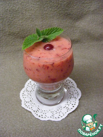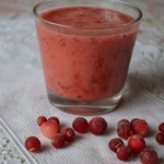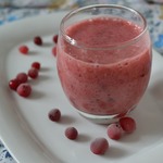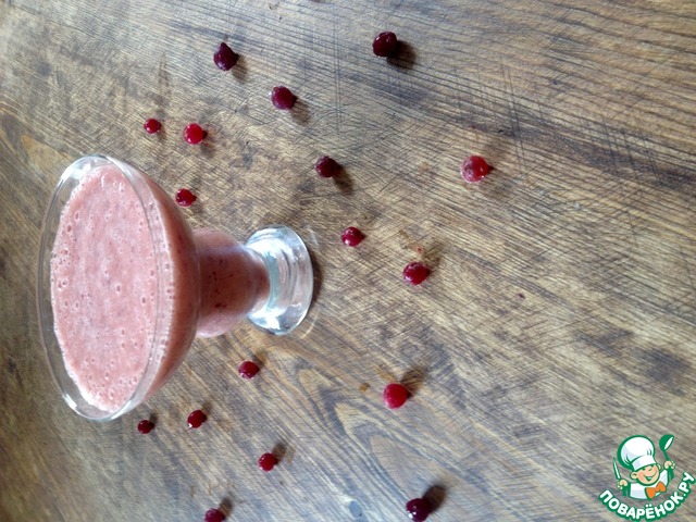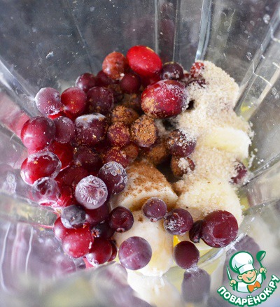 Взбивать в блендере до однородной консистенции - у меня на это ушло секунд 15-20, так как клюква должна быть полностью измельчена.