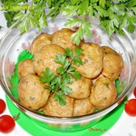 На противень, застеленный пекарской бумагой, выкладываем шарики из фарша, размером с грецкий орех.