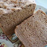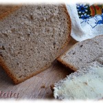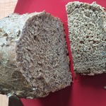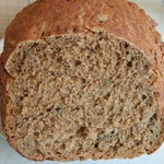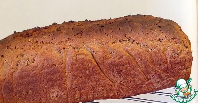 [+5]Ароматищще необыкновенный , домочадцы не дали толком остыть, разрезали еще теплым ( на удивление резался прекрасно, не крошился). Еле урвала треть буханочки для фотоотчета.Хлебопечки пока нет, пекла в духовке.