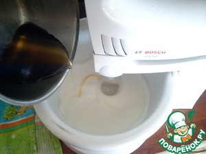 Не переставая взбивать, тонкой струйкой вводим горячий сироп. Таким образом мы завариваем белки. Пробуйте крем на вкус, может потребоваться добавить ещё сахара, а лучше сахарную пудру. (У меня крем отдавал лимонкой, потому что я всыпала больше кислоты чем положено. Добавила ещё сахарной пудры и проблемам решилась.)