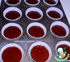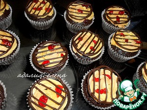 • Нанести крем на капкейки, сверху крема несколько капель красного джема.