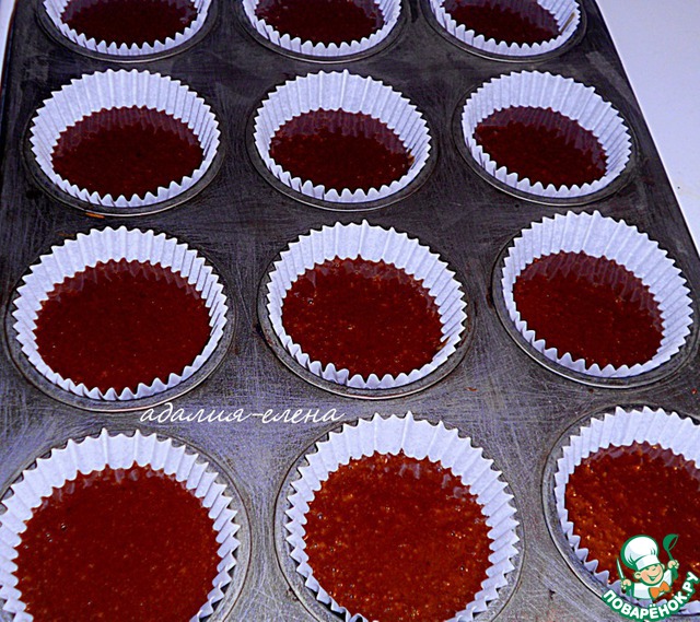 Форму для маффин заполнить на 2/3 и выпекать при 180*примерно 17-20мин.