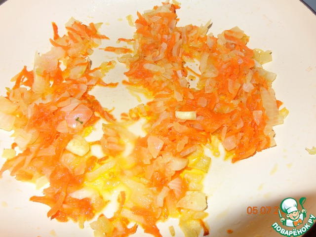 Морковь трем на крупной терке, обжариваем на растительном масле. Остужаем. -