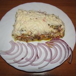 только сегодня я немного посамовольничала и добавила еще один слой - обжаренные грибы с луком)