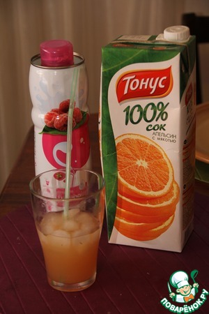 Напиток "Тархун" + апельсиновый сок + малиновый сироп.