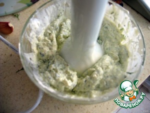 1.измельчить блендером в однородную массу зелень, сыр, майонез