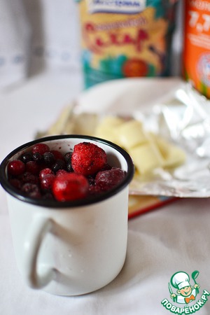 Ягоды перед самой подачей залить горячей! молочно-шоколадной смесью. По желанию посыпать сверху тёртым белым шоколадом. Всё.