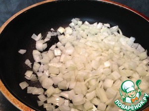 Итак, возьмем большую сковороду с крышкой. Поставим ее на средний газ, добавим немного подсолнечного масла. (Много нам не нужно ). Добавим туда средне/мелко нарезанный кубиками лук. -