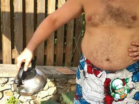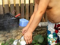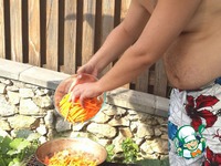 Ну тут к процессу подключились все наши мужчины (справа, кстати, именинник того дня), потому что сразу пошел запах баранинки и не поинтересоваться, что тут за фотосессия, было невозможно. Пока девочки загорали, наши мальчики крутились около мангала и внимательно слушали Сережины советы по приготовлению плова |
