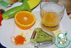 Апельсин моем, натираем цедру и выдавливаем сок. Нам понадобится 50 мл сока.