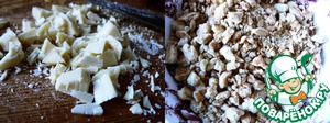 Белый шоколад более крупными, печенье растолочь-что бы были как мелкие так и крупные кусочки.