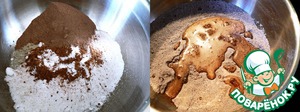 Какао смещать с сахарной пудрой, добавить молоко всё тщательно перемешать.