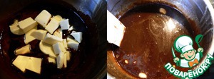 Сливочное масло нарезать кубиками, добавить в шоколадную смесь и размешивать до полного растворения.