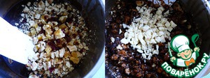 В смесь высыпать часть печенья и цукаты, перемешать.