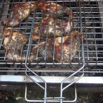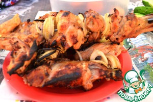 Удобнее жарить на решетке. Но у нас её нет, поэтому мы жарили на шампурах.