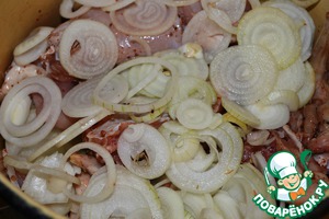 Заливаем мясо так, чтобы покрыть его. Я добавила еще пару ложек майонеза, чтобы жирнее было (можно масло подсолнечное добавить).