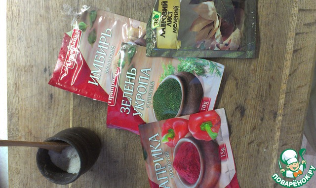 Далее добавляем специи, кто какие любит, я добавила такие + чёрный перец, но его на фото нет.