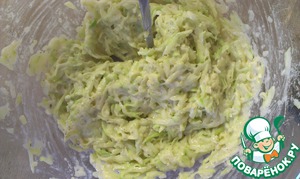 Берём кабачки, у меня 2 небольших, очищаем от шкурки и трём на крупной тёрке