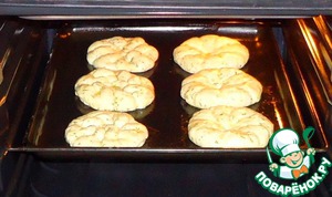 Затем заготовки булочек – лепёшек выкладываем на промасленный противень, и каждую смазываем растопленным сливочным маслом.