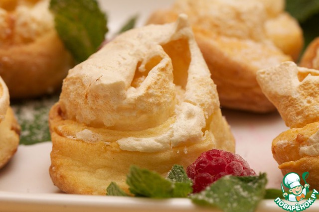 Очень вкусно получилось! Спасибо за рецепт! От себя дополню: я после того как раскатала тесто, разрезала его на плоски, а только потом смазала безе и свернула каждый рулетиком. На мой взгляд так удобнее