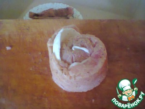 Свернуть рыбу с моцареллой рулетиком...