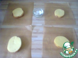 Подготовленные картофельные пластинки посолить с двух сторон и уложить на подготовленную бумагу.