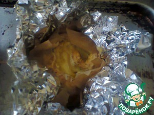 Ближе ко второй половине времени запекания фольгу раскрыть и отправить противень обратно в духовку.