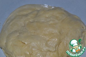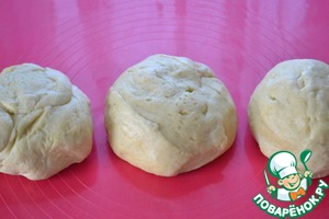 Подошедшее тесто хорошо обминаем и делим на 3 равные части.