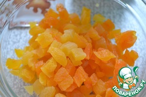 Тем временем моем и сушим курагу, режем ее кубиками.