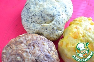 В одну часть добавляем мак, во вторую - куркуму и курагу, в третью - какао и орехи (если орехи кедровые, то их измельчать не надо). Каждую часть теста очень хорошо вымешиваем.