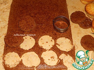 Круглой формой, равной диаметру капкейка, вырезать из шоколадного коржа круги. -