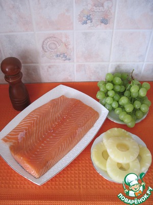 Ингредиенты для «Шашлык из семги с ананасом и виноградом»: