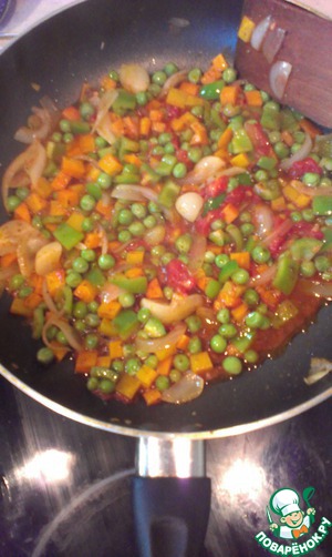 5. и доводим до полуготовности перца. Я лично люблю, чтобы овощи были полусырыми, а кому не нравится такое, тушите до полной готовности. вобщем, вот что получается.