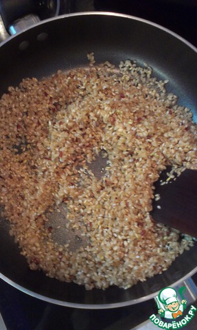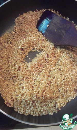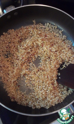 7. далее обжариваем рис на сковороде до полного испарения воды, после испарения ещё минут 5-7 обжариваем