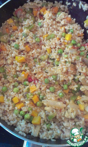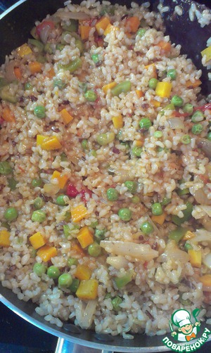 10. когда рис будет готов, соединяем его с овощами и перемешиваем. даём постоять минут 10 -15