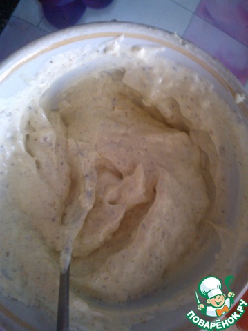 Майонез смешиваем с чесноком и перцем ( по желанию можно добавить любимые приправы)