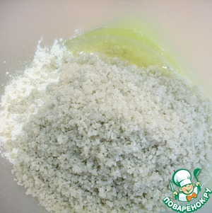 Крупную соль 500 г, муку 250 г, воду 120 мл и 1 яичный белок положить в миску и смешать.