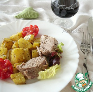 Свинину нарезать на порционные куски, подавать с картофелем.