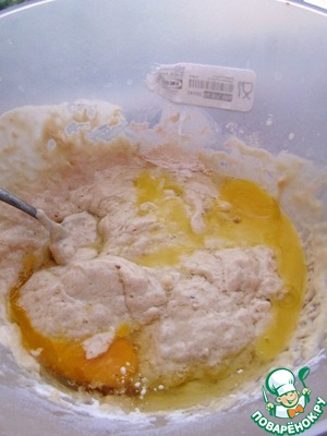 Добавляем муку, яйца, мягкое масло, ванилин и хорошо все перемешиваем.