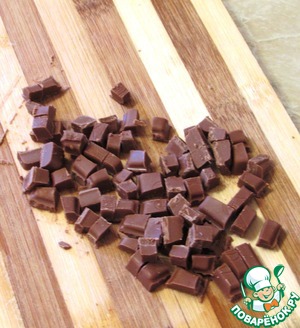 Шоколад рубим на мелкие кусочки. Можно воспользоваться специальными шоколадными каплями. Добавляем к тесту.