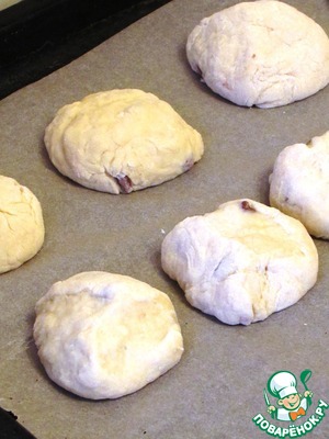 Из теста формуем небольшие шарики и выкладываем на противень, застеленный бумагой для выпечки. Даем постоять 10-15 минут. Печем в разогретой духовке примерно 20 минут до румяного цвета. -