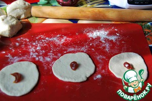 Раскатываем из теста кружки. Подсыпаем муку, чтобы не липло.