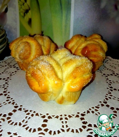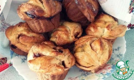 Именно с таким названием я увидела эти булочки в интернете и сразу поняла, что этот вариант для меня. Помимо того, что их делать довольно-таки просто, они смотрятся эффектно при подаче. А главное, я решила проблему с вытекающим постоянно из булочек джемом, здесь он не вытекает вообще.