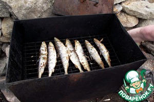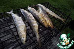 В это время разжечь дрова в коптильне, когда прогорят, положить на решетку рыбу и опустить в коптильню, в дым.