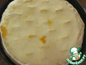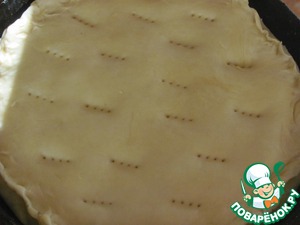 И накрыть меньшей частью теста. Наколоть верх пирога вилкой