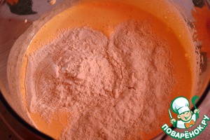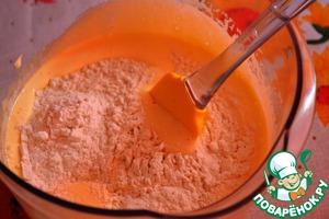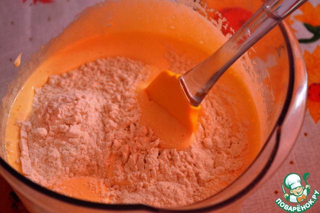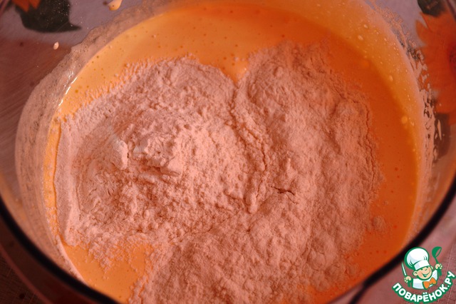 Муку смешиваем с разрыхлителем и добавляем в тесто.